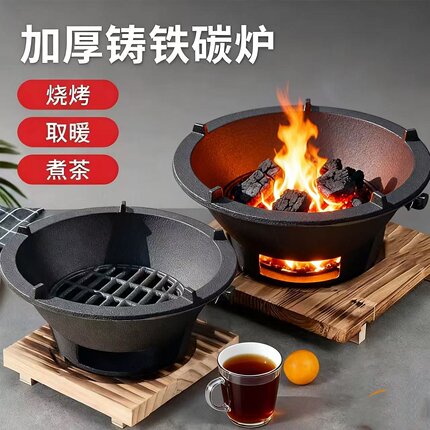 老式家用铸铁烧烤围炉碳炉取暖煮茶火炉室内炭炉户外烧烤炉炉子