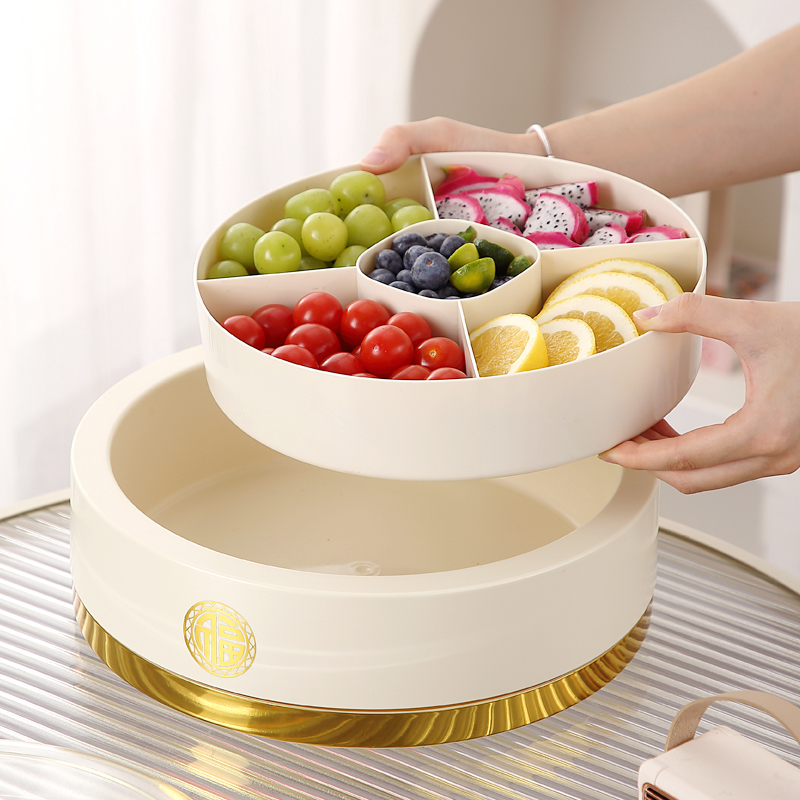 新年干果盘糖果盒家用客厅茶几水果盘2025新款零食坚果分格收纳盒