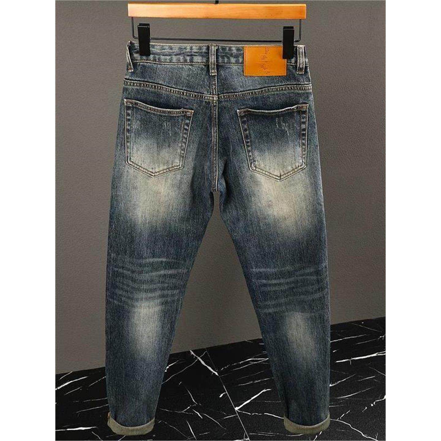 春秋季涂鸦破洞牛仔裤男士韩版修身小脚裤潮男装痞帅小直筒长裤子