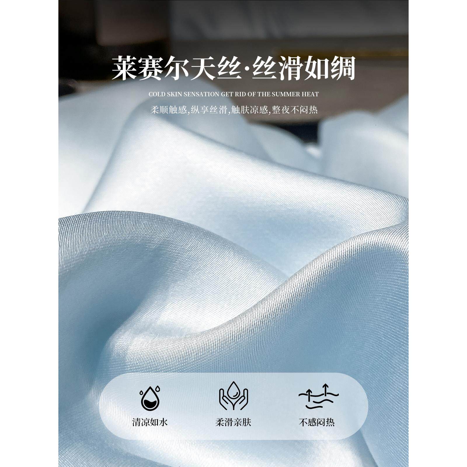 红豆兰精天丝枕套夏季凉感冰丝宽边枕头套夏凉一对装48x74cm轻奢