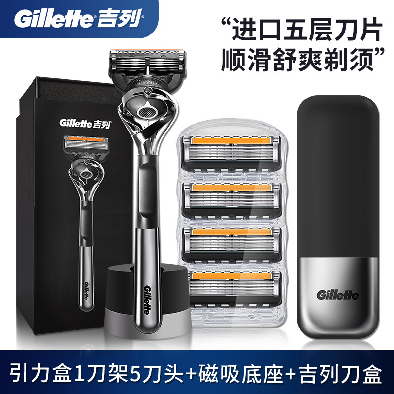 吉列锋隐致顺剃须刀男士手动刮胡刀锋速5刀片吉列胡须刀引力盒