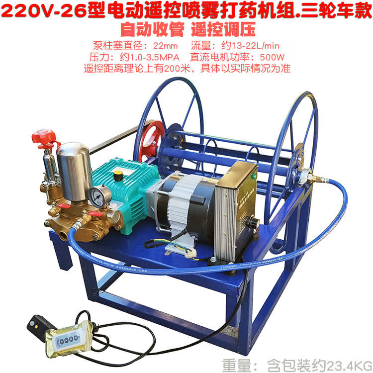 48V直流柱塞泵电动三轮车喷雾机 60伏遥控自动收管打药器单双电机