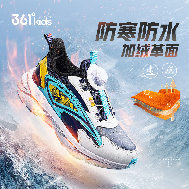 361度童鞋儿童跑鞋冬季男童革面加绒运动鞋中大童棉鞋女童鞋子
