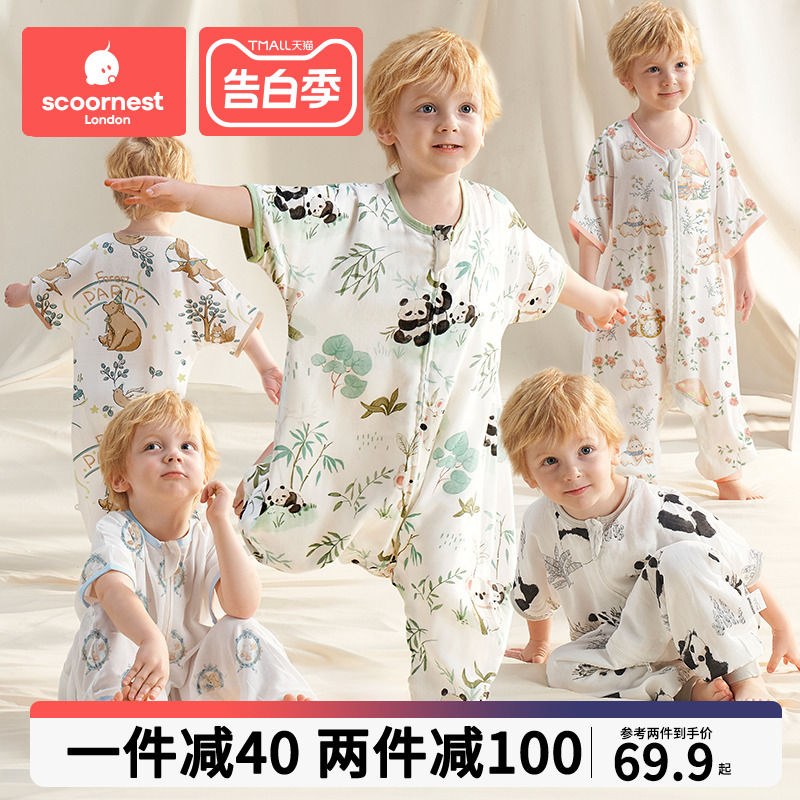 科巢婴儿睡袋竹棉纱布春秋款宝宝分腿夏季防踢被儿童四季通用睡袋