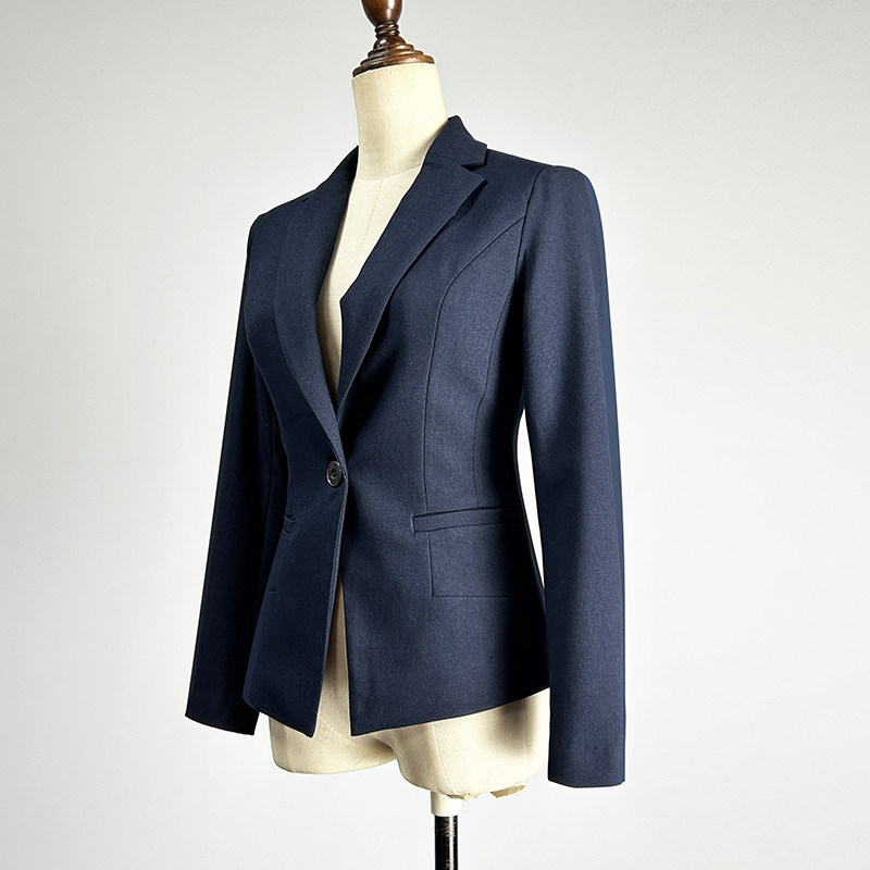 职业装藏青色单排一粒扣职场西装