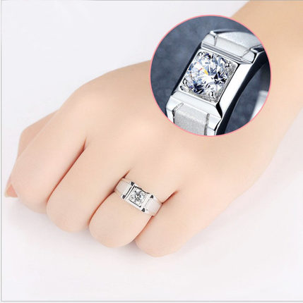 PT950铂金男士霸气大指环饰品结婚戒指18K白金莫桑钻戒男戒礼品