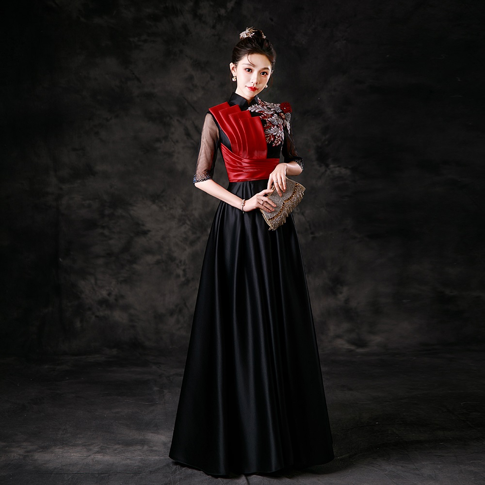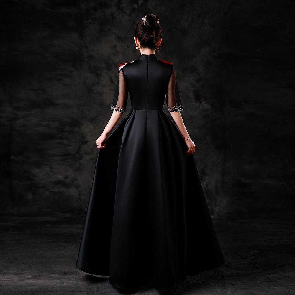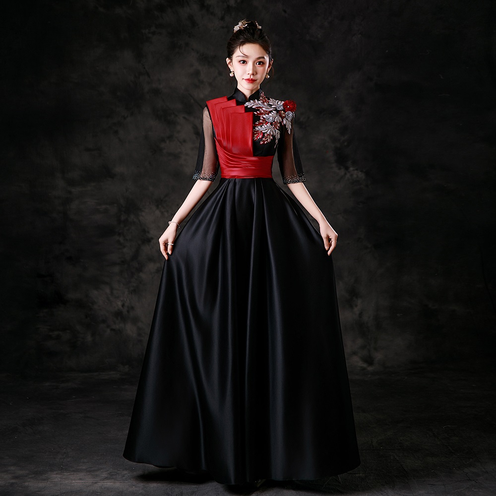 紫缘萱2025新款高档中式演出服团体合唱模特走秀大气场显瘦舞台装