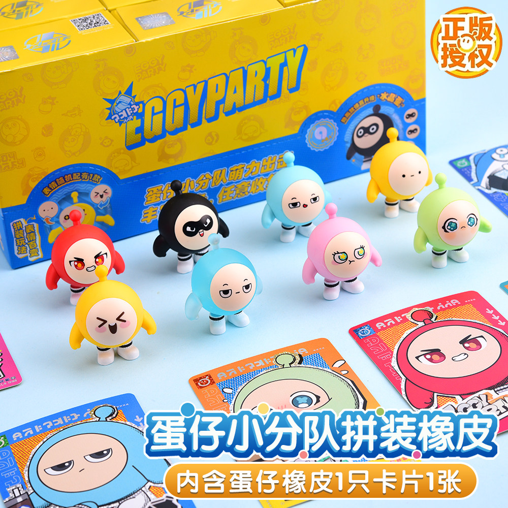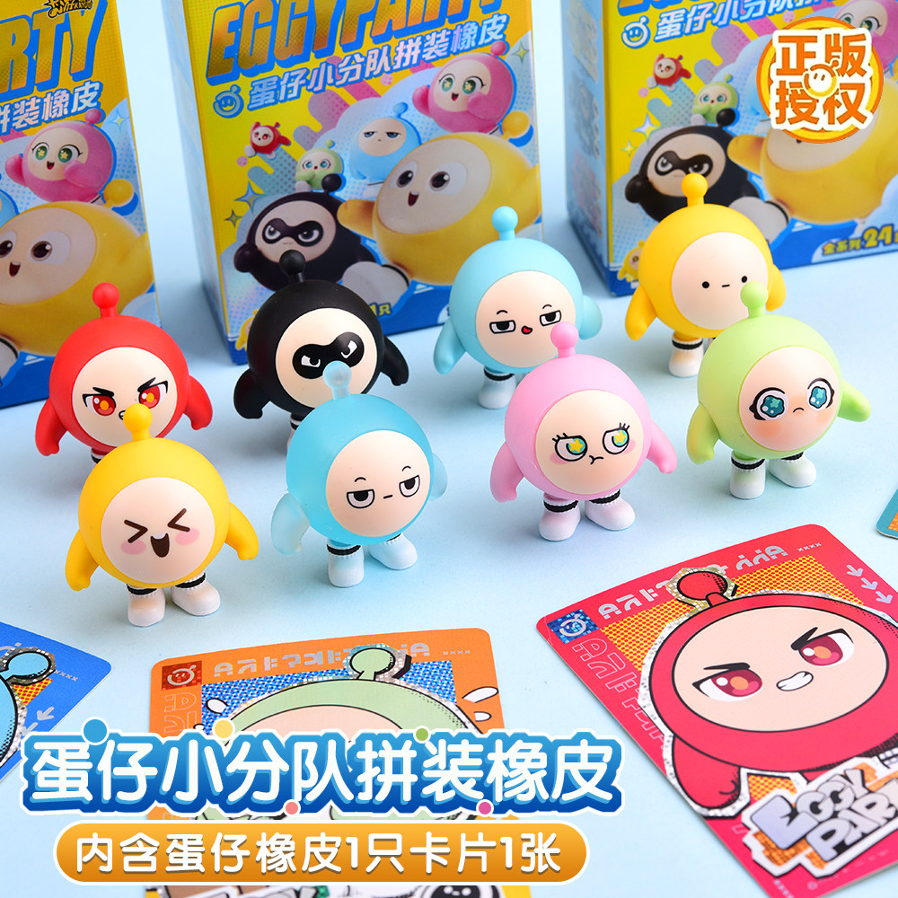 蛋仔派对小分队橡皮擦拼装橡皮擦人偶盲盒第1弹隐藏水晶蛋公仔文具