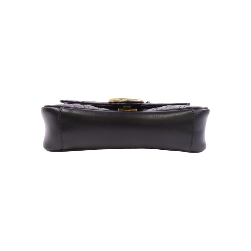 中古Gucci古驰女包B级9新Marmont马蒙包牛皮斜挎包黑色 HK正品