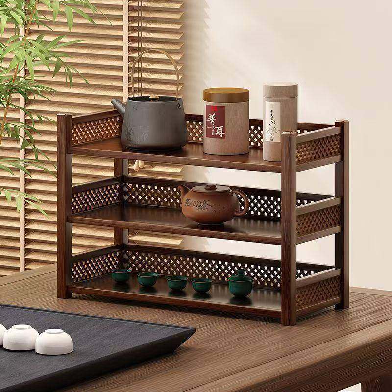 茶杯架子茶具茶器收纳架茶桌紫砂壶摆放架实木置物架桌面小博古架