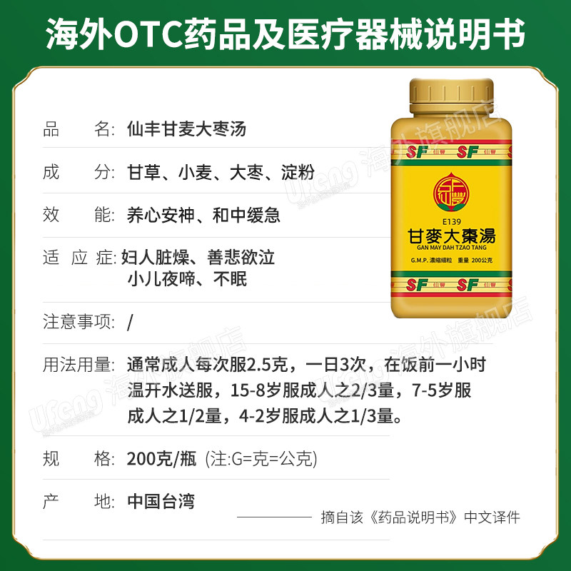 台湾仙丰甘麦大枣汤中药倪海厦养心安神和中缓急人泣小儿夜啼不眠