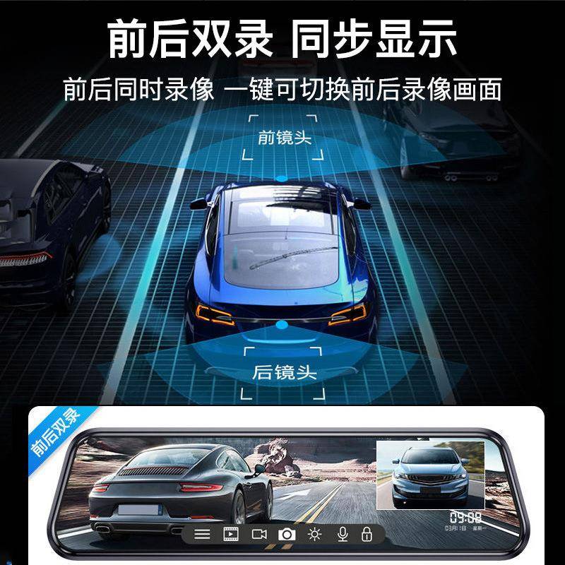 新款行车记录仪流媒体全屏触屏后视镜高清夜视双录倒车影像电子狗