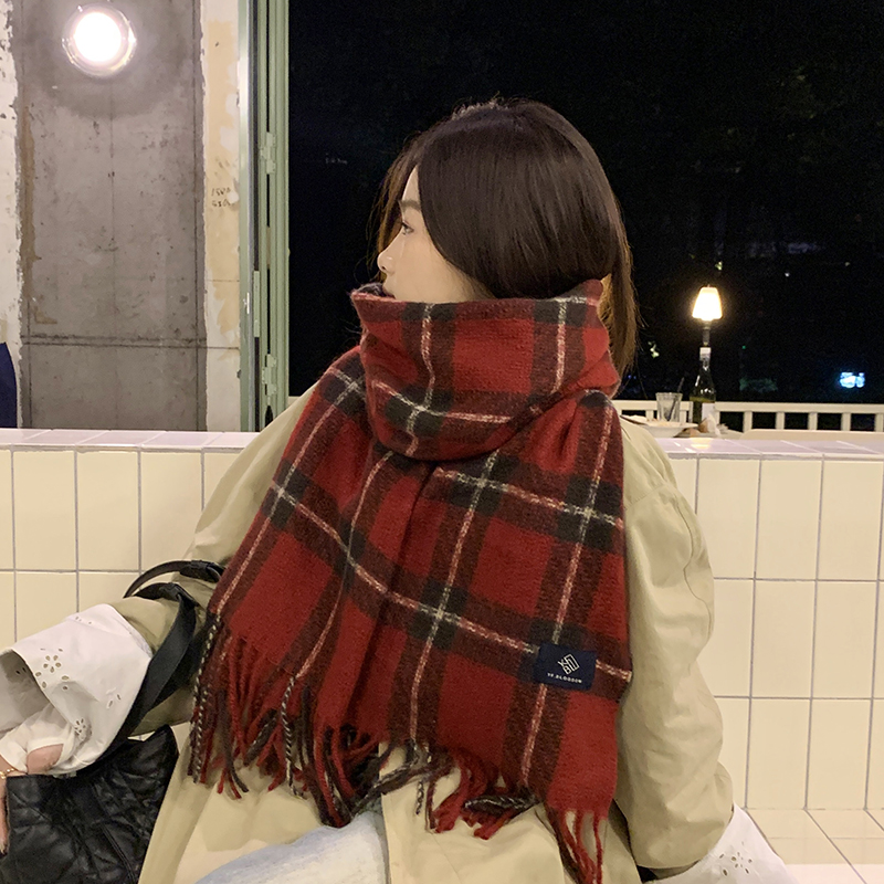 圣诞新年红色围巾女冬季2025新款长款格子仿羊绒围脖披肩两用保暖