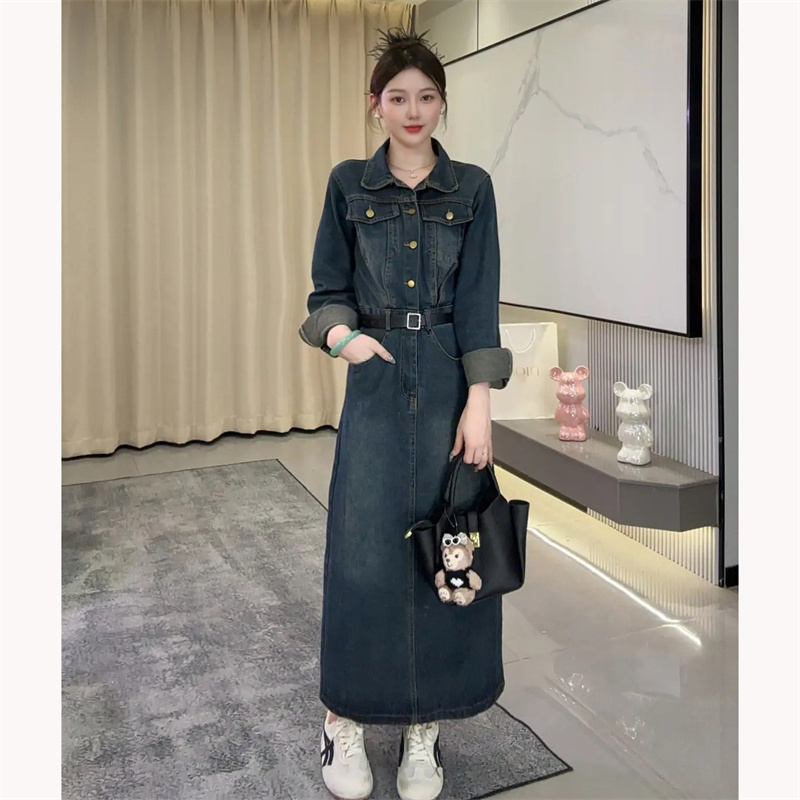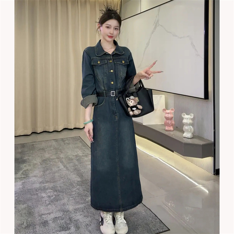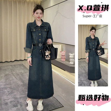 法式巨好看长袖牛仔连衣裙女2025新款今年流行爆款小个子收腰长裙