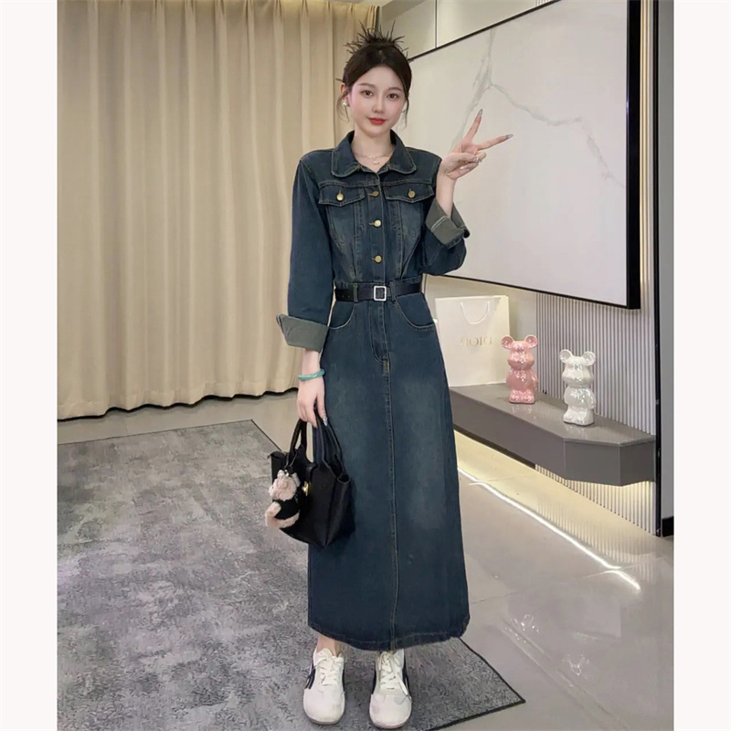 法式巨好看长袖牛仔连衣裙女秋季