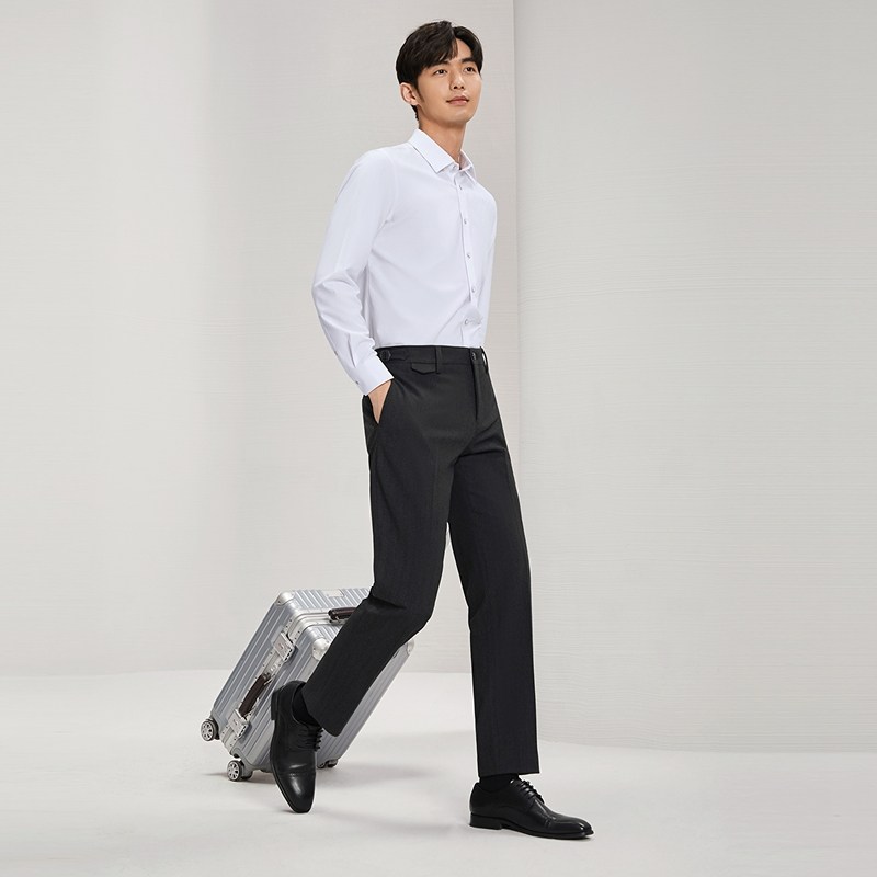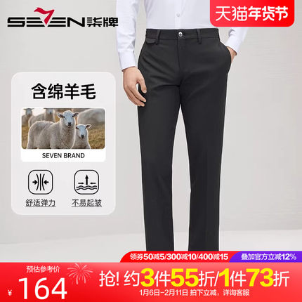 【含绵羊毛】柒牌人字纹西裤男2024秋季新款男士商务直筒弹力长裤