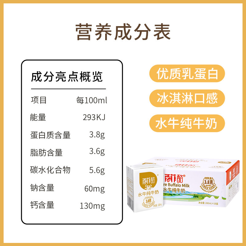 百菲酪水牛纯牛奶儿童早餐奶200ml*18盒/箱量贩装年货送礼盒装
