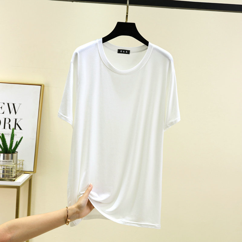 男士莫代尔短袖T恤衫夏季薄款宽松家居上衣爸爸圆领半袖大码上衣