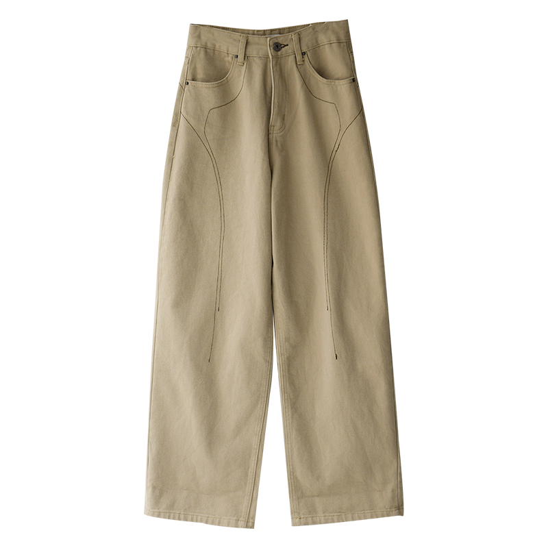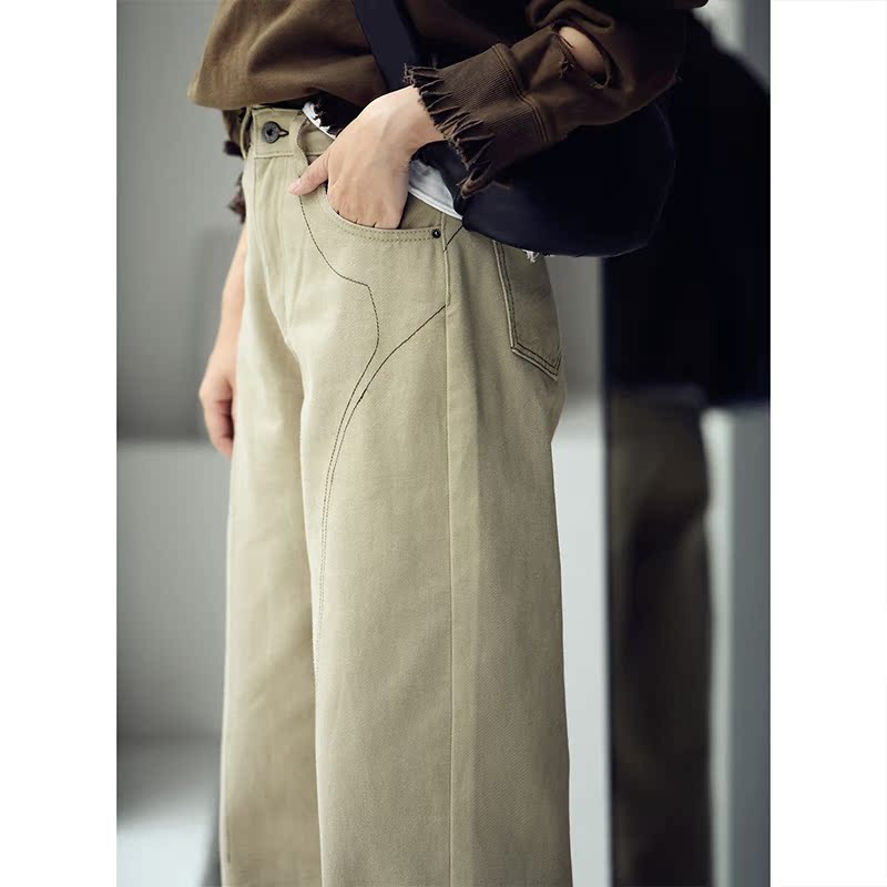 K8892C韩版休闲明线设计宽松显瘦薄绒高腰直筒阔腿长裤女米兰宣言
