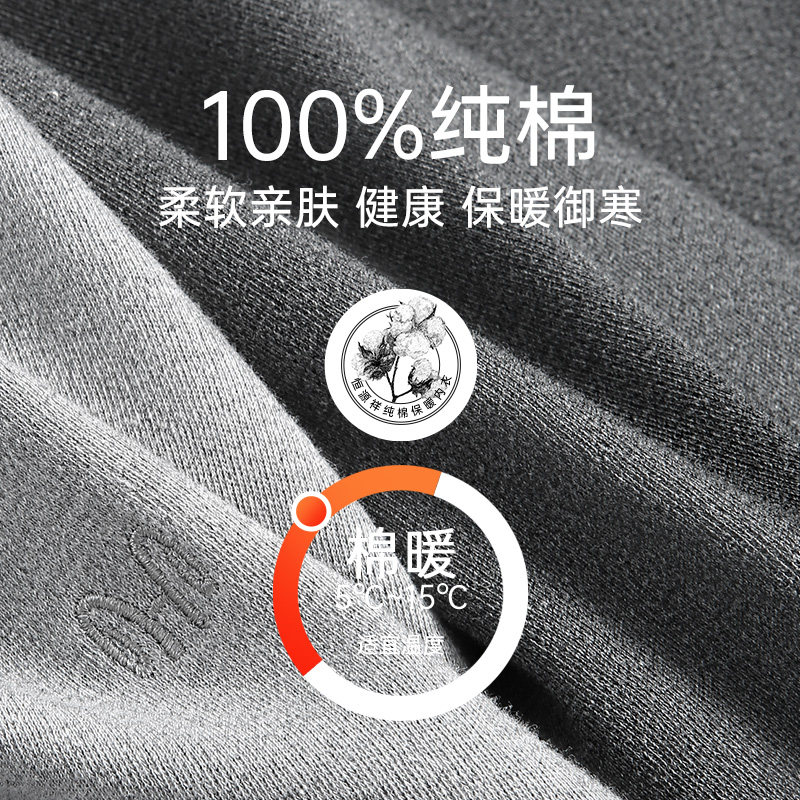 恒源祥男士纯棉秋衣单件上衣打底衫薄款全棉保暖内衣秋冬季棉毛衫