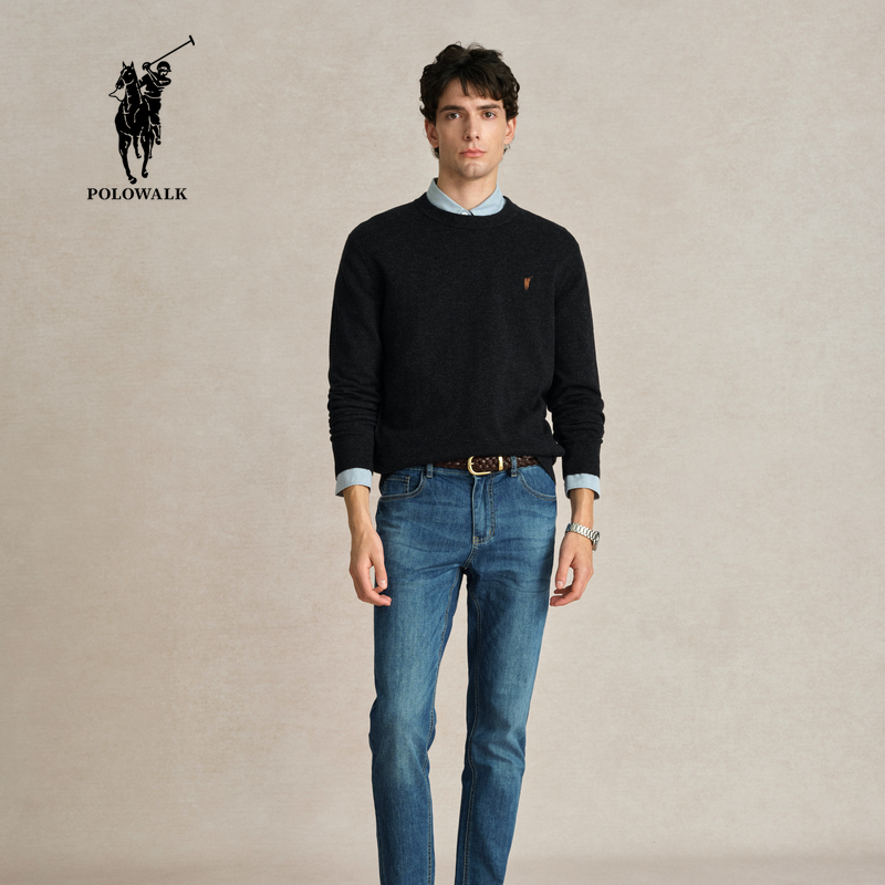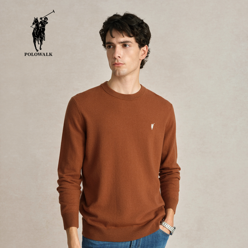 POLOWALK男式圆领羊毛衫2025新品绵羊毛休闲套头上衣AB7W44220532