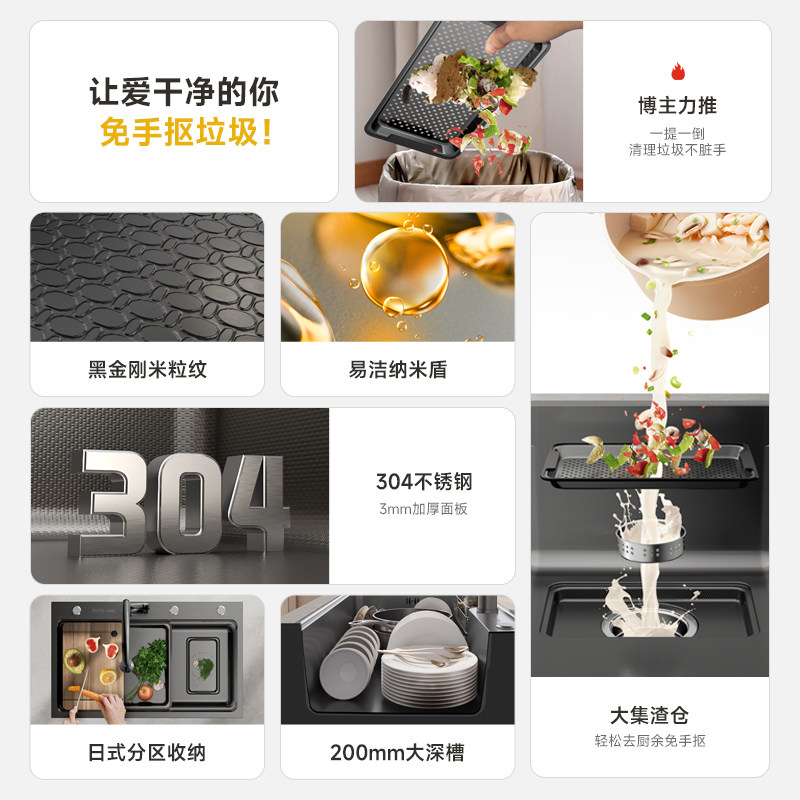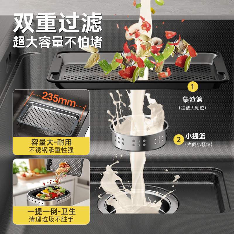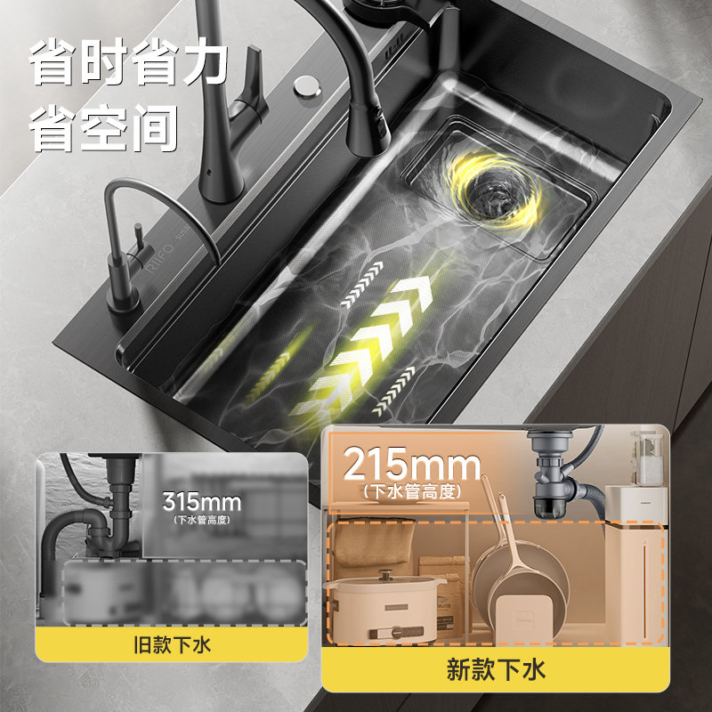 日丰集宝水槽大单槽厨房5MM加厚304不锈钢家用阶梯台下纳米洗菜盆
