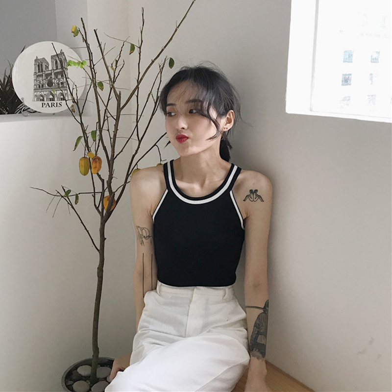 现货速发针织背心夏打底内搭短款韩版无袖吊带性感漏锁骨挂脖上衣