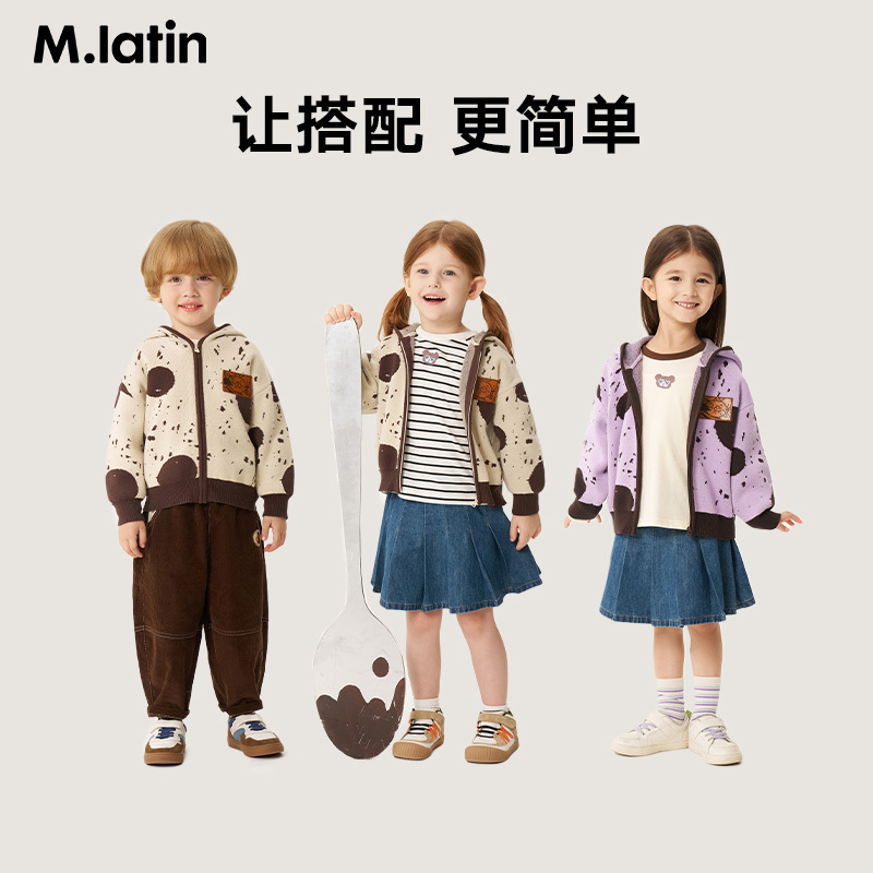 马拉丁儿童针织外套25秋季新款男女小童卡通提花波点连帽毛衣