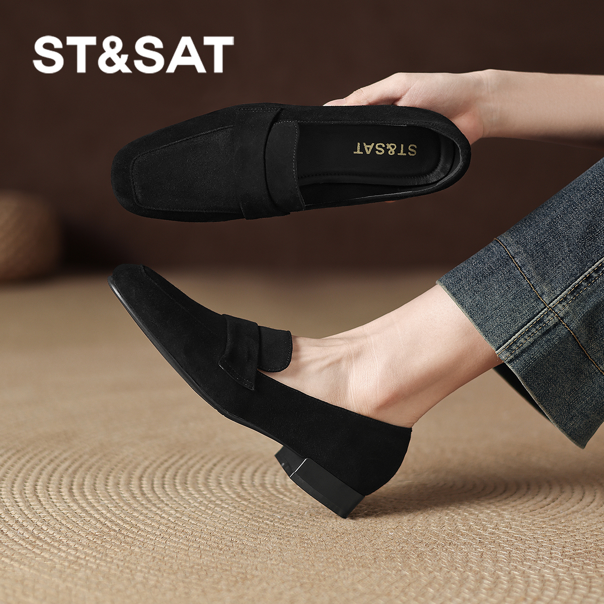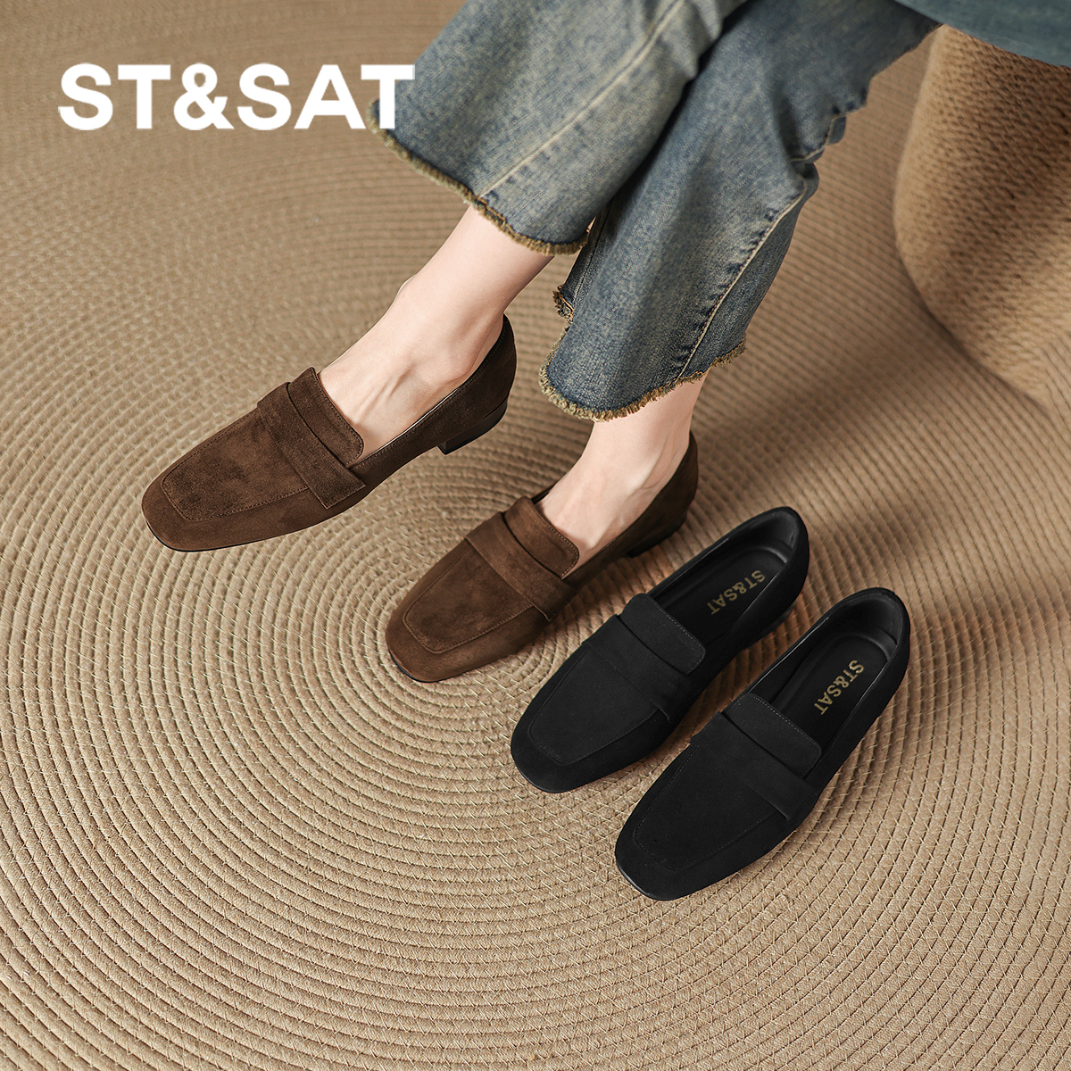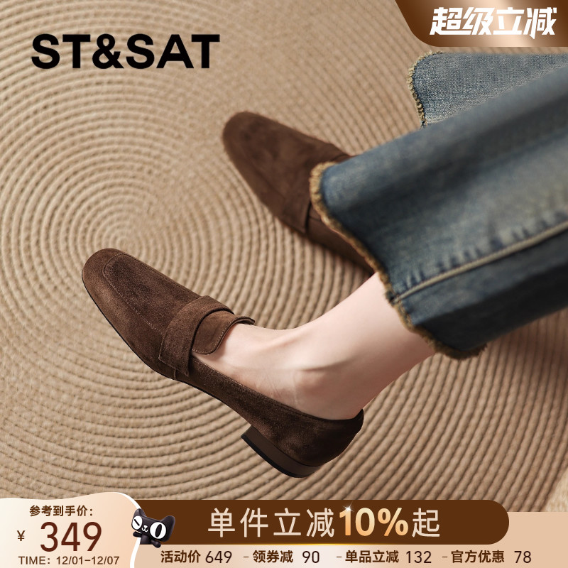 星期六棕色绒面乐福鞋女2025新款秋老钱风皮鞋软底羊皮单鞋【直】