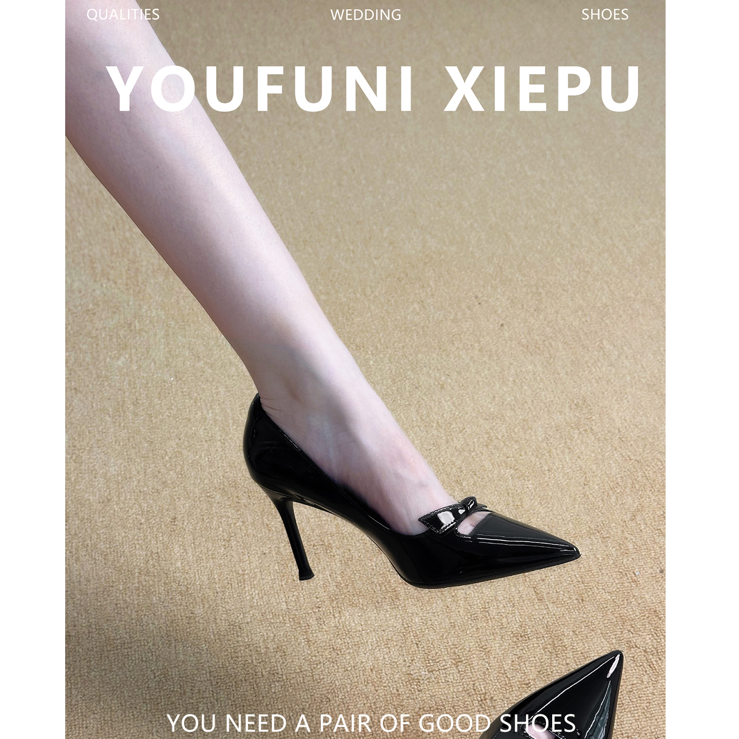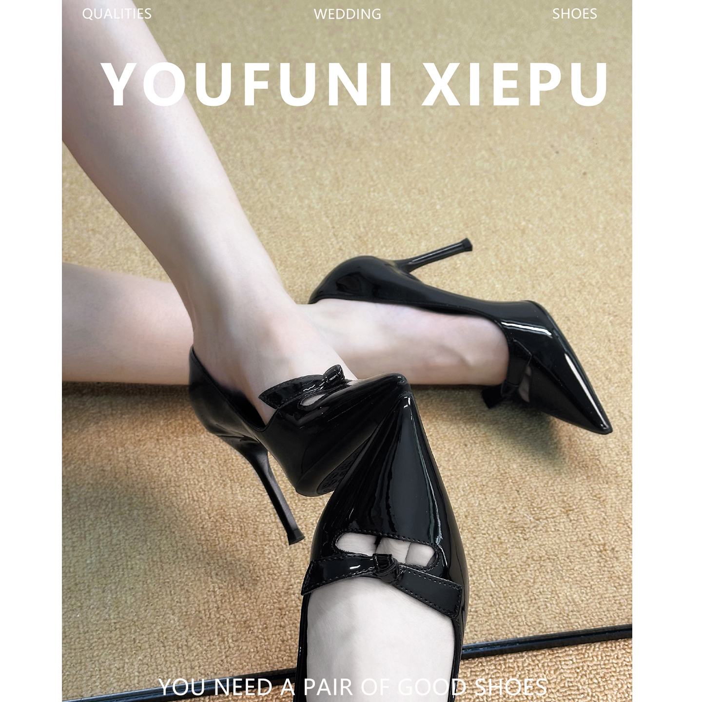 黑色漆皮高跟鞋女2025年春夏季新款法式小众设计感细跟尖头单鞋女