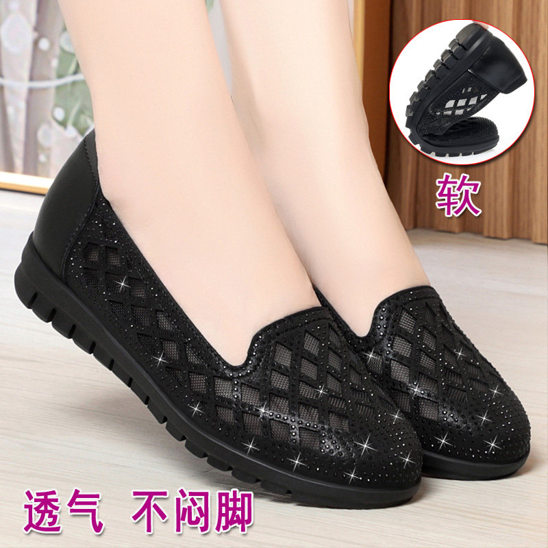 中老年妈妈鞋夏季网纱包头凉鞋镂空透气女鞋大码平底薄款单鞋软底
