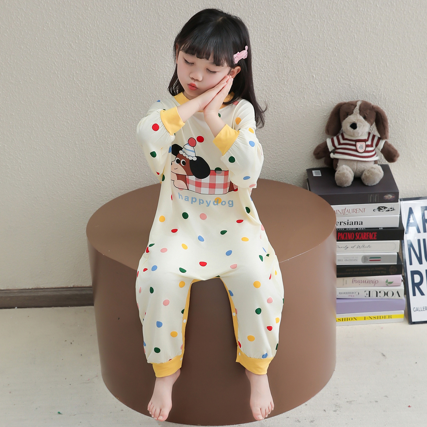 女童连体睡衣春秋季纯棉薄款长袖儿童莫代尔家居服夏季宝宝小女孩