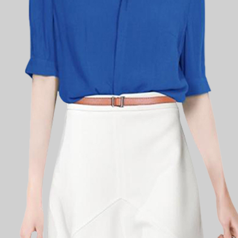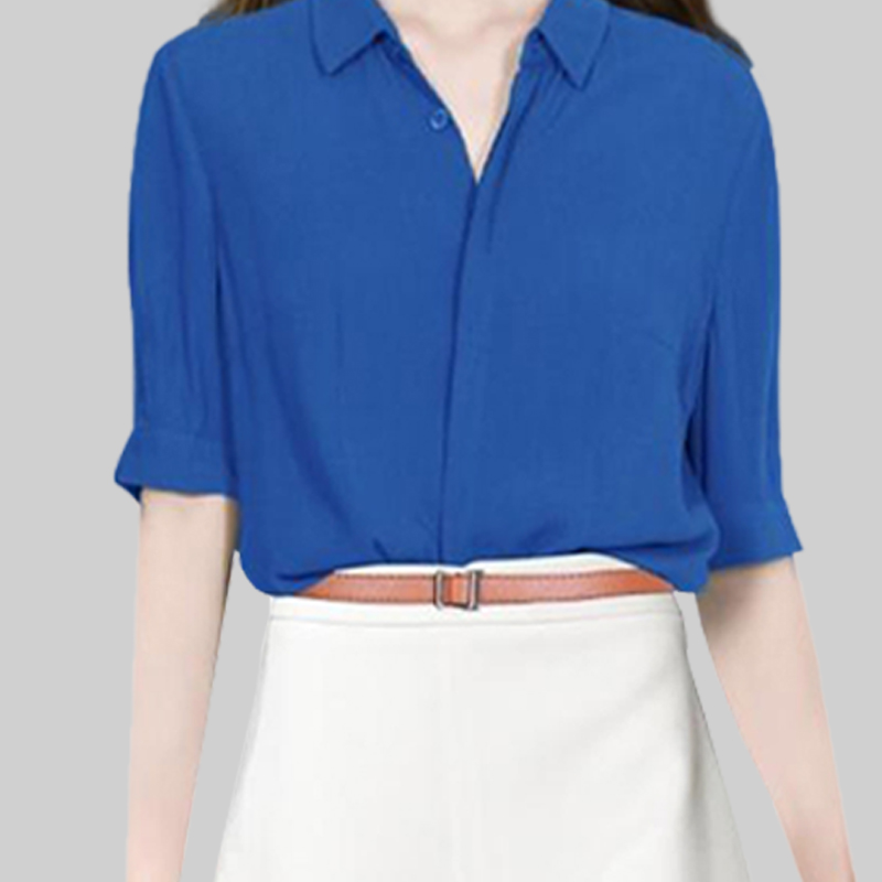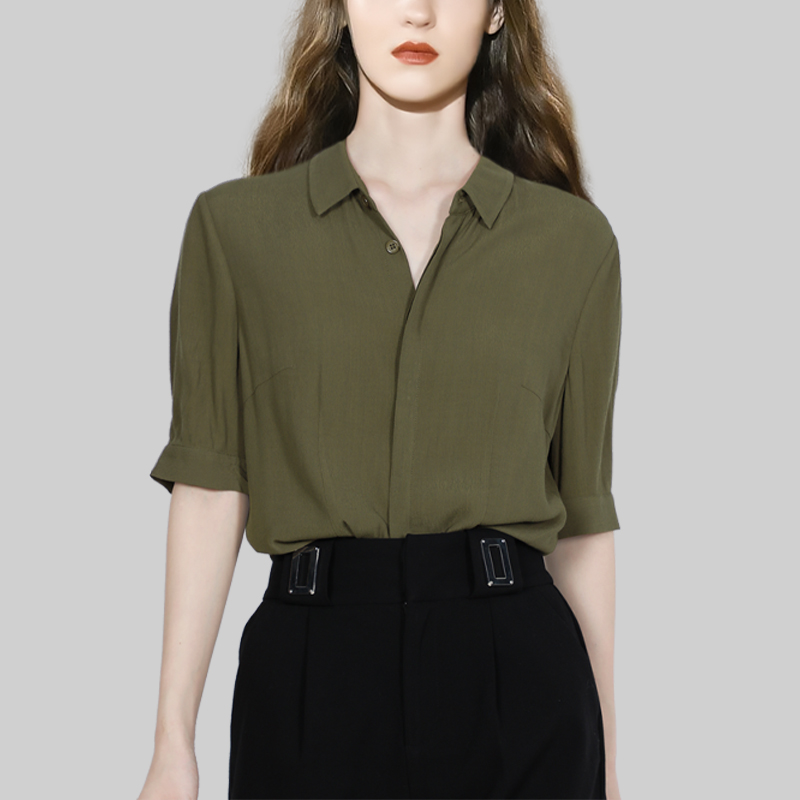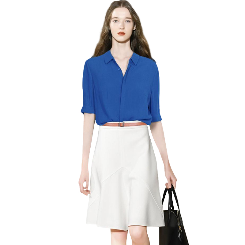 2025年新款POLO领短袖衬衫女夏季气质休闲职业衬衣蓝色百搭上衣潮