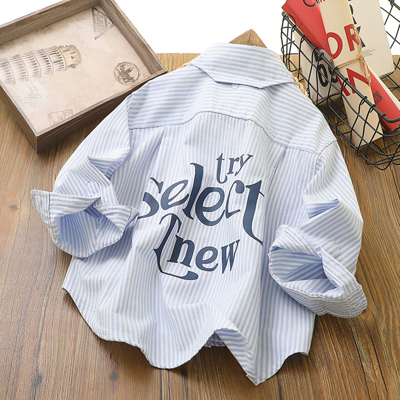 男童纯棉衬衫2025春秋季新款儿童帅气条纹衬衣韩版中大童外穿长袖