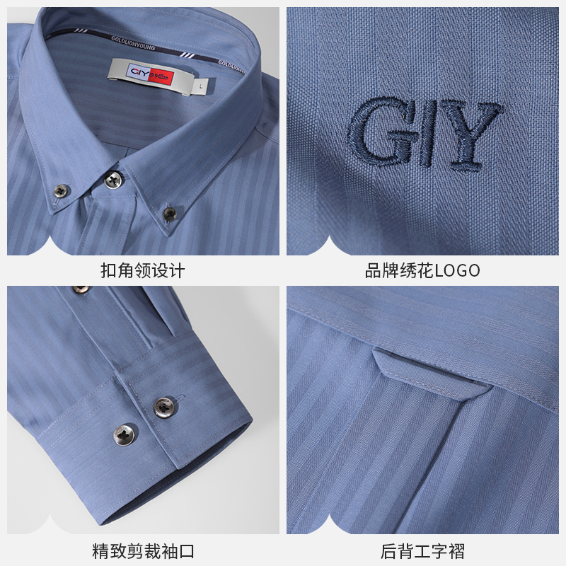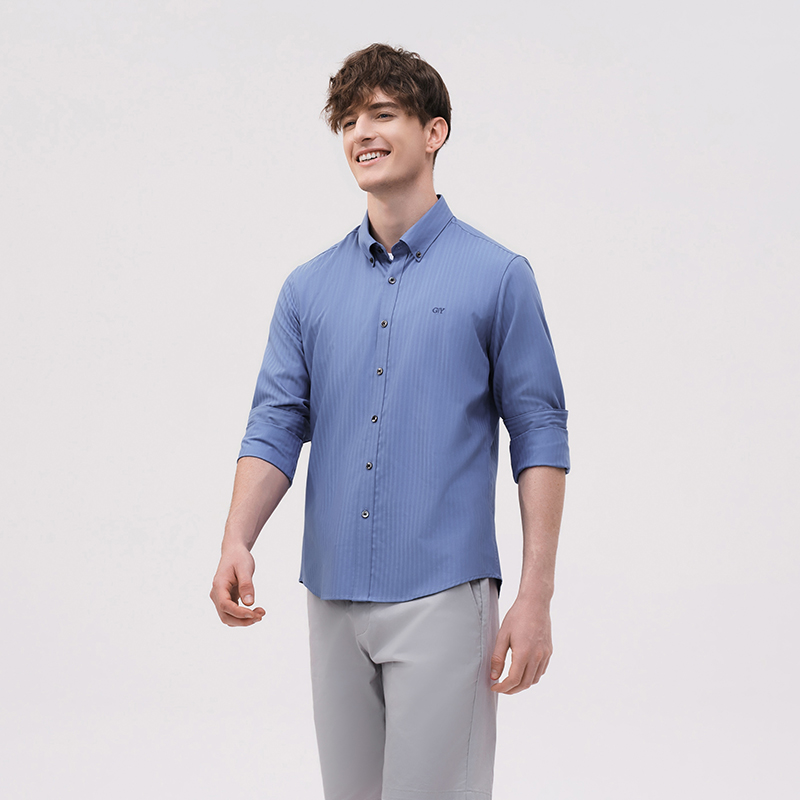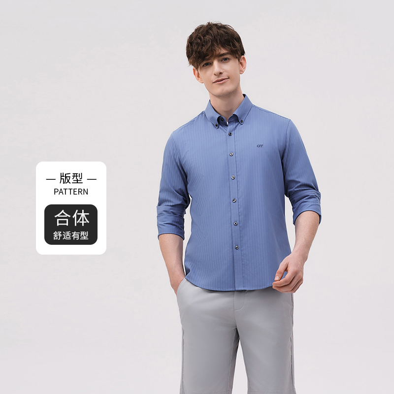 金利来GY暗花竖条纹衬衫男士春夏休闲百搭长袖高级感衬衣上衣