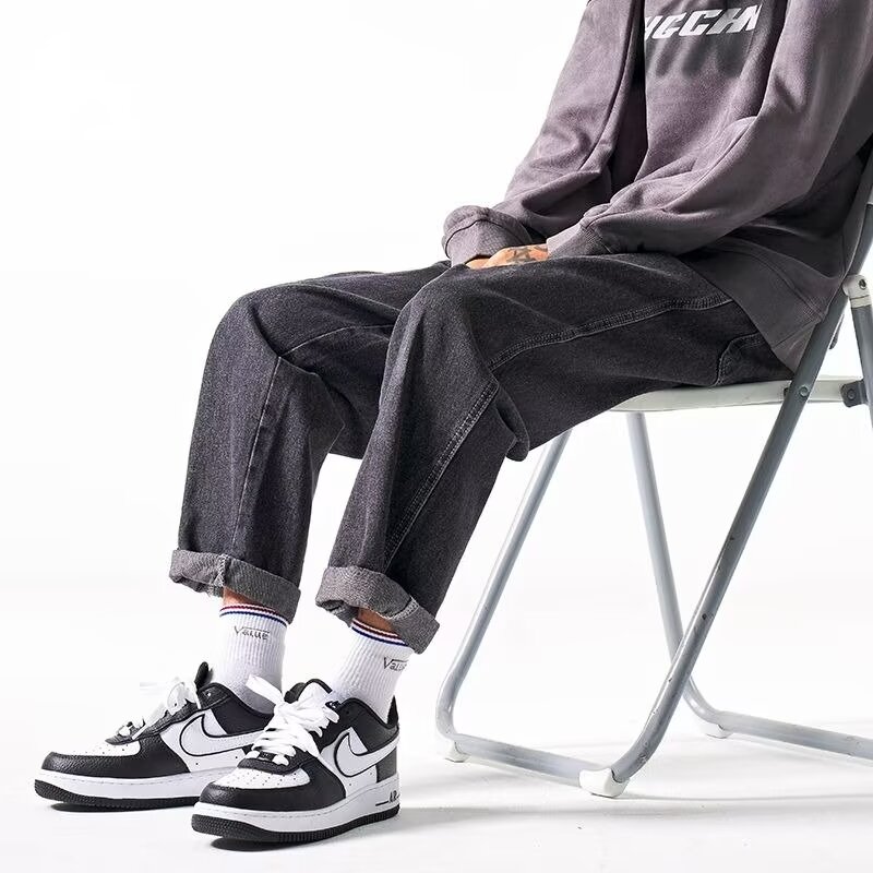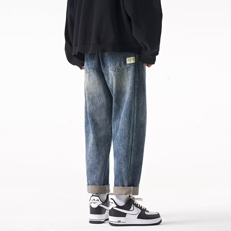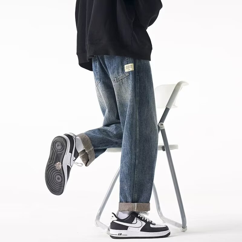 牛仔裤男夏季新款港风高街潮牌阔腿直筒长裤韩版复古百搭休闲裤子