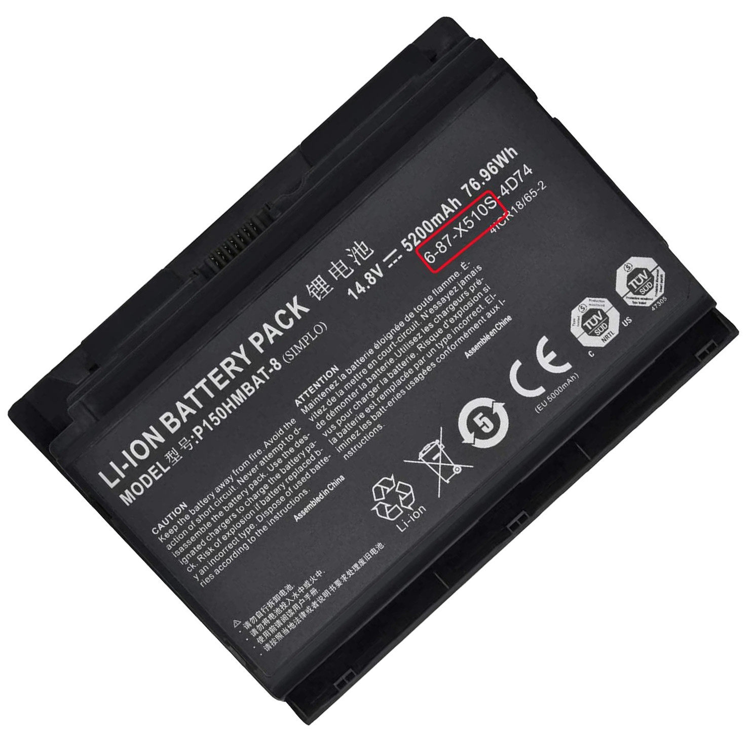 X510S蓝天P150SMA P151SM X511EM P170HM/HMX P171SM1未来人类X711-B1神舟CLEVO笔记本E非原装6-87-X710S电池