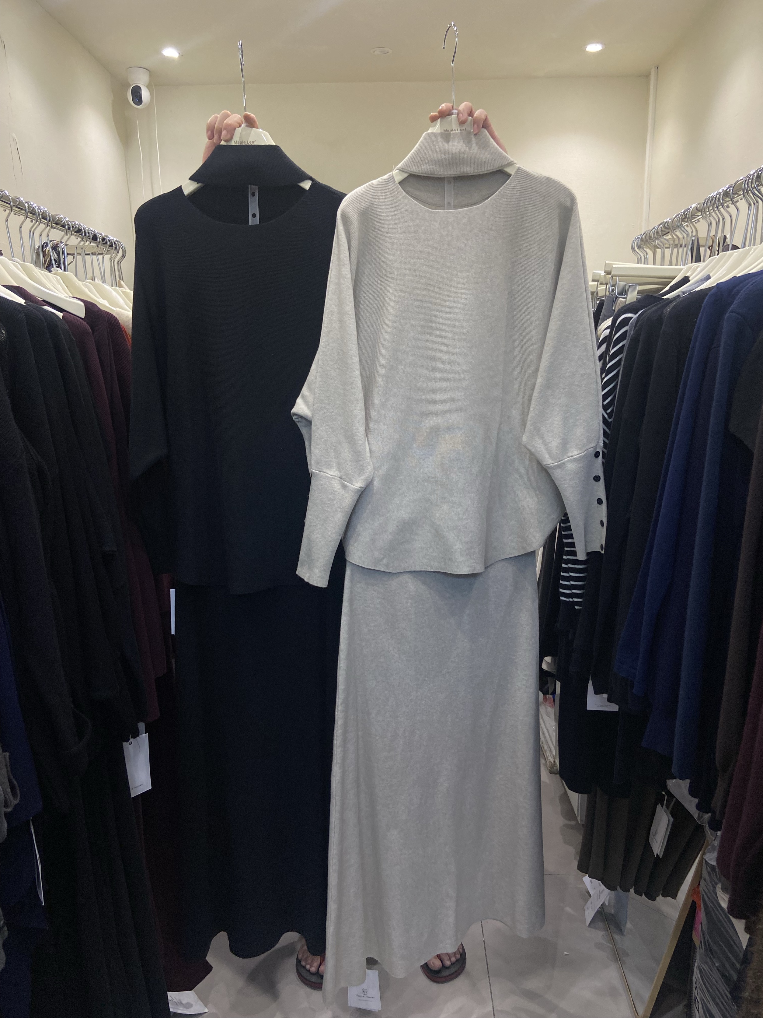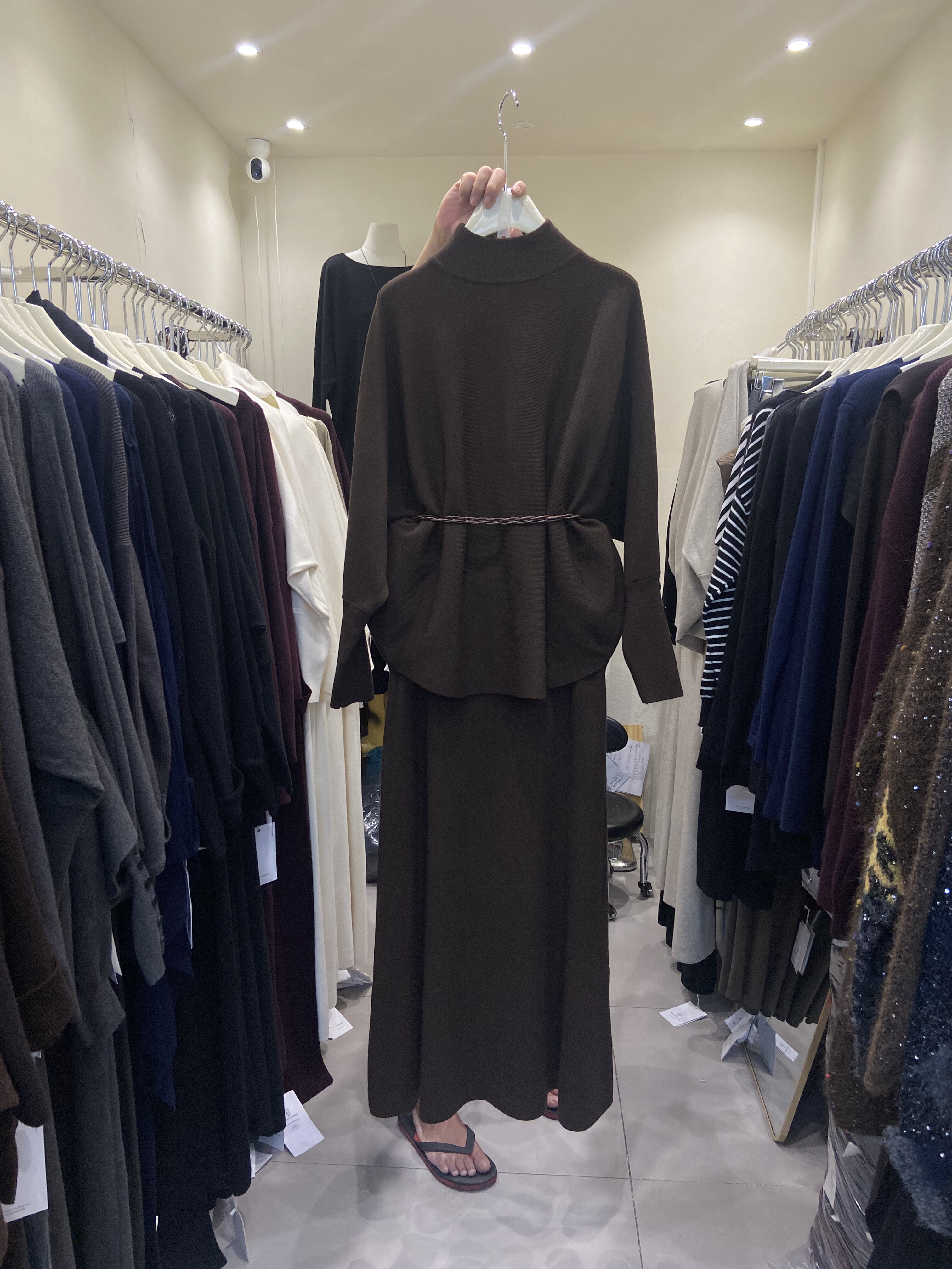 2025秋冬新款韩版设计感时尚半高领慵懒风毛衣加高腰半身裙加腰带