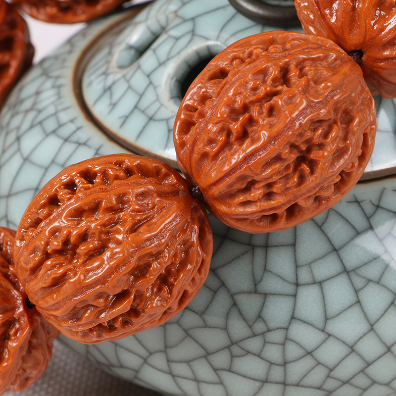 野生高抛灯笼核桃手串小秋子多棱大手持麻核桃串文玩手把件多刺串