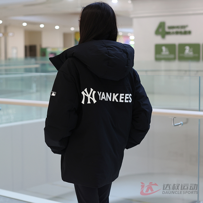 24新款MLB情侣羽绒服男女NY复古学院风连帽运动棉羽外套3ADJB1246