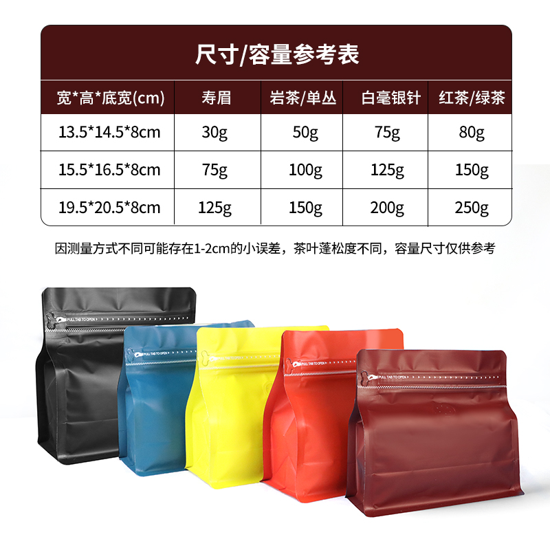 多尺寸多颜色八边封茶叶包装袋子