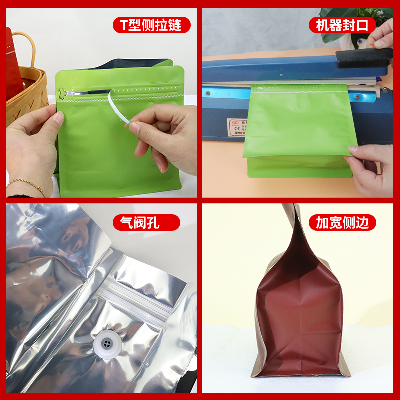 茶叶包装袋气阀密封袋单向气阀袋自立款铝箔八边封储存包装袋定制