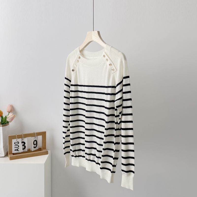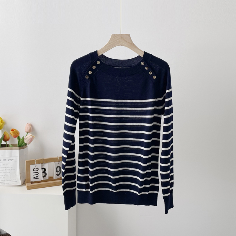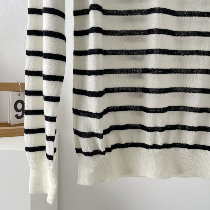 减龄黑白条纹薄款羊毛针织衫女春秋款气质佰搭海魂衫内搭打底上衣