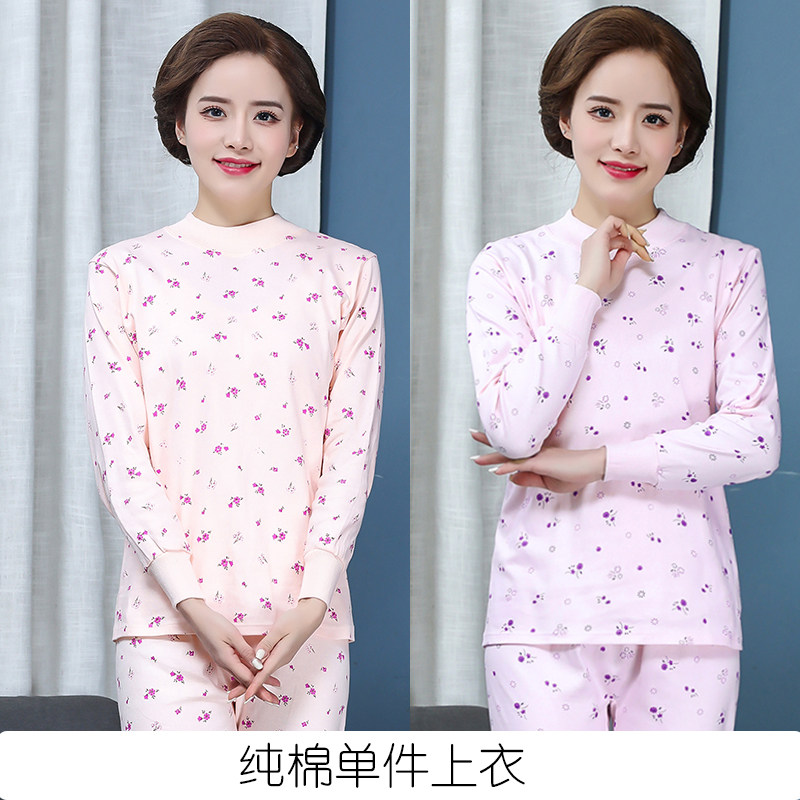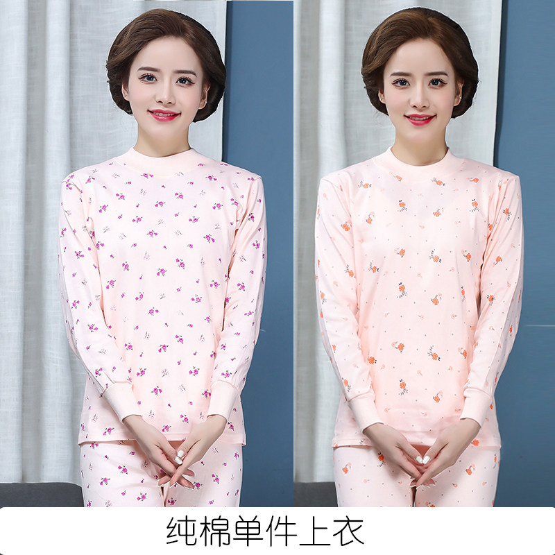 纯棉秋衣单件上衣女士中高领保暖打底内衣中老年人线衣全棉棉毛衫