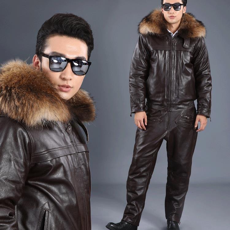 头层牛皮机车服哈雷空军真皮皮衣皮裤套装男摩托车飞行员皮夹克