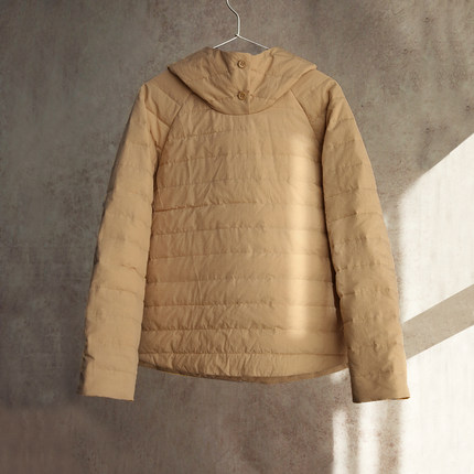 云芝元 新冬款象牙色丝棉套头连帽95白鹅绒插肩排骨格羽绒服1706S