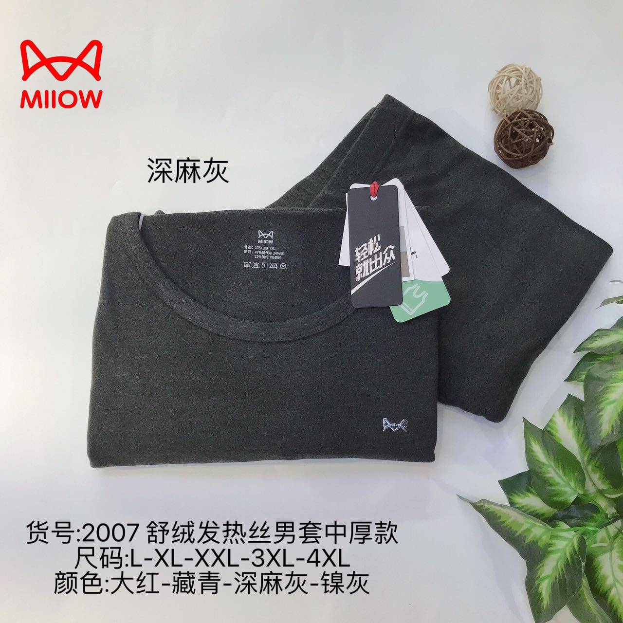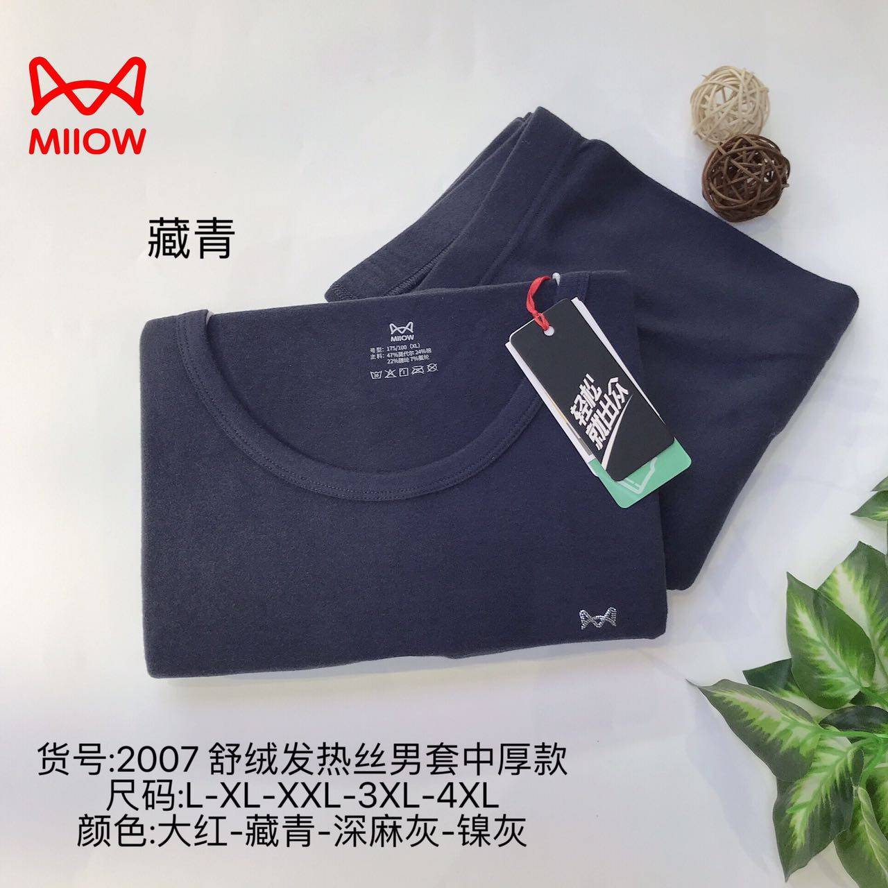 猫人秋衣秋裤中厚保暖套装圆领