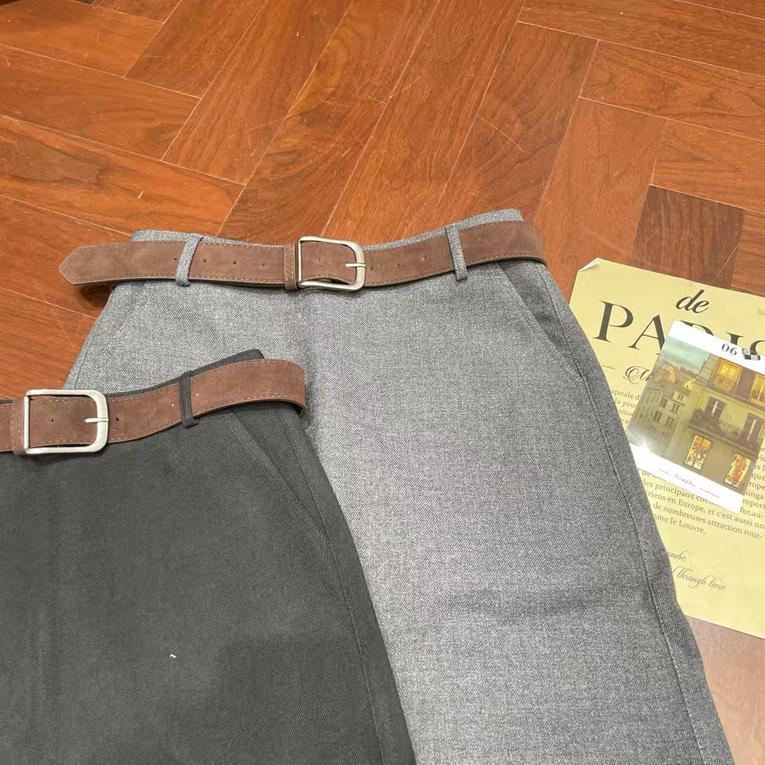 欧洲站2025秋冬新款时尚拼色腰带极简风A版半身裙女士短裙8789