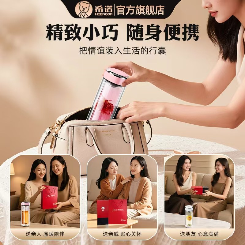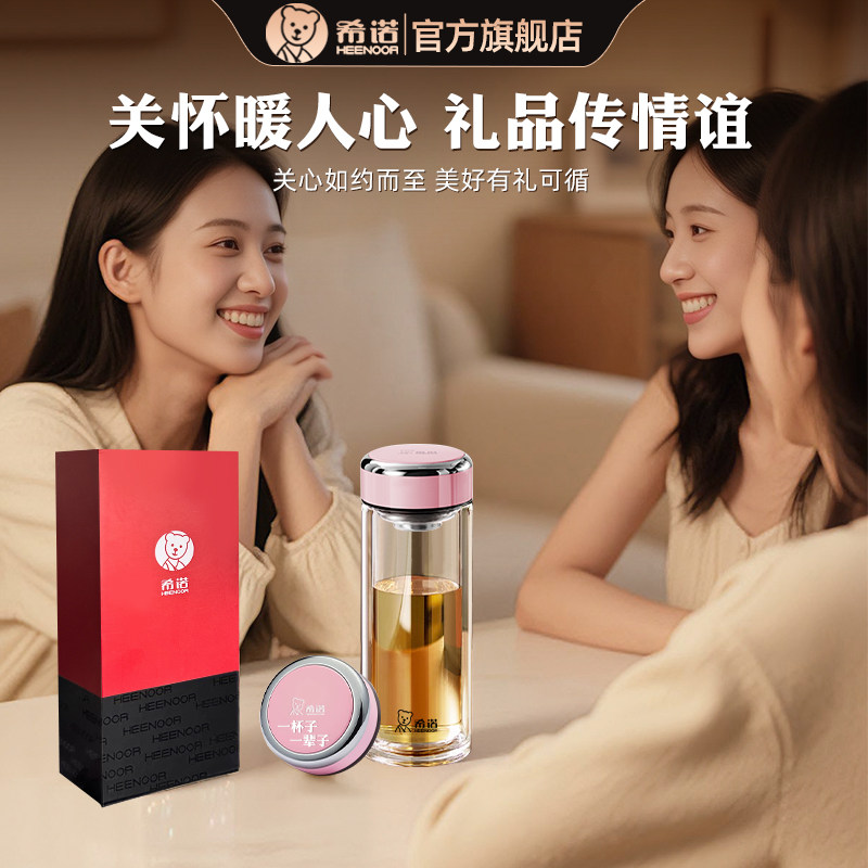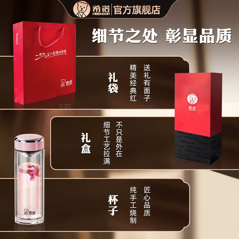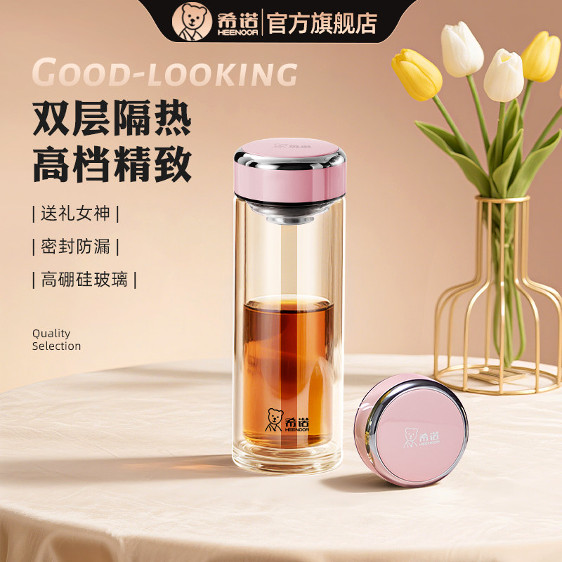 希诺双层玻璃杯女士情人节礼物杯新款高颜值办公室花茶杯刻字定制