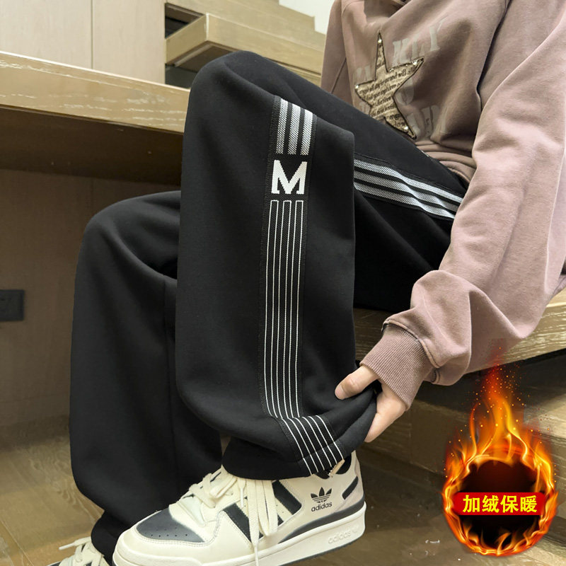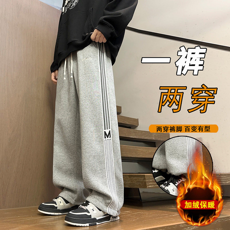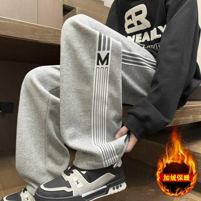 初中生休闲长裤子男孩青少年卫裤男纯棉秋冬季加绒加厚直筒运动裤